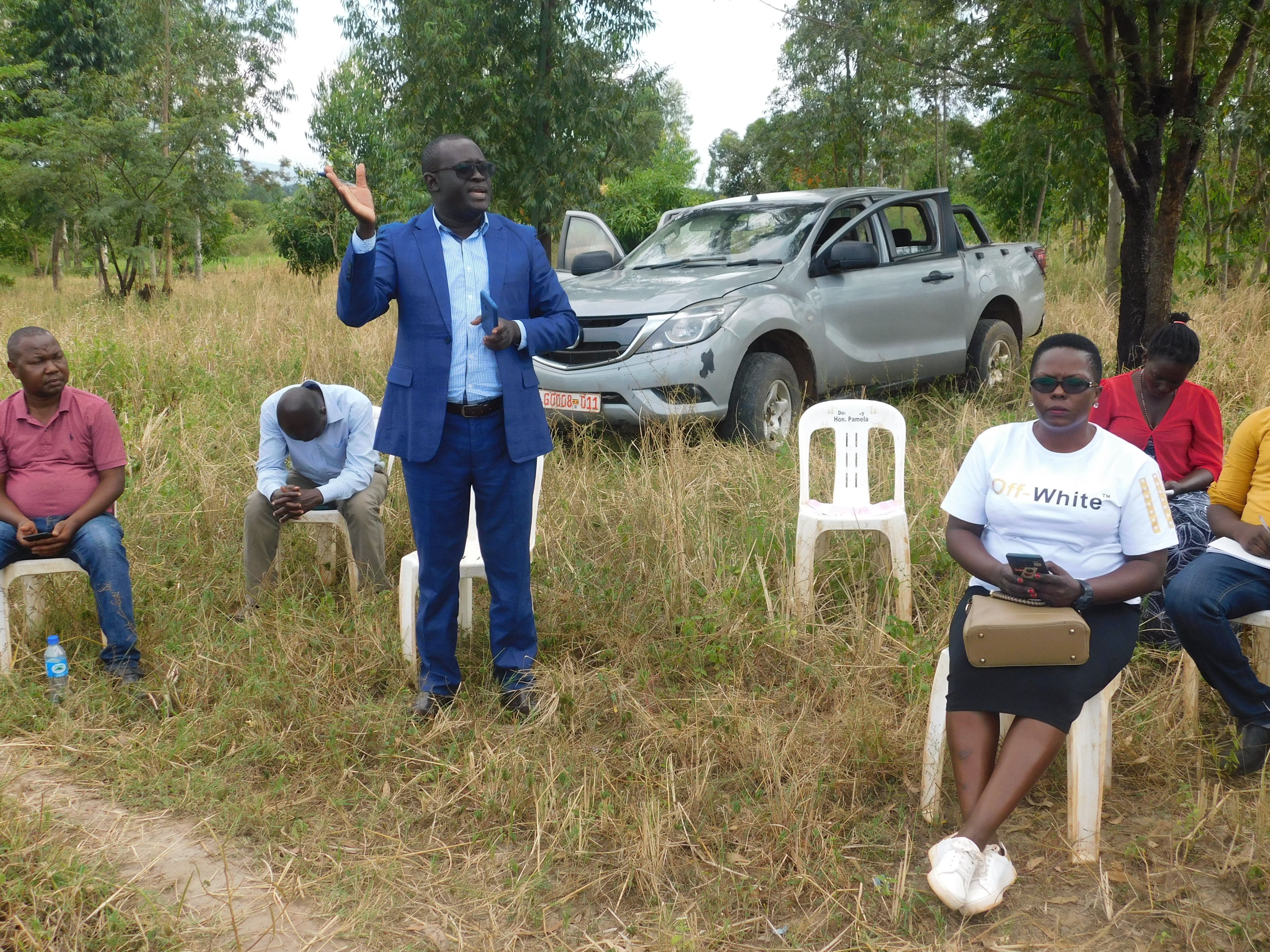 CAO Budaka has appreciated Mr.Owori Perezi for donating 5.1 acres of land for the construction of Mugiti Seed school.While addressing the members this afternoon during the pre-visit of the site,CAO  thanked the communit for being custodians of the land since it was given out years back.“Having a seed school here is good though the construction works might take about 02 years which calls for patience because of the financing terms,”CAO lamented.He also urged the leaders to mobilise communities to bring their children to the school especially those in primar level from within the subcounty.He told the members that quality local materials from the community will be considered as per the contractors demand.He further called upon them to clear the access road leading to the school before commissioning and actual works.Ms.Nafuna Irene the Senior Land Management Officer appreciated the donor of land for the 5.1 acres which was adequate enough for the structures.She added that the land was surveyed respectively.District Planner,Mr.Kabise Shaban warned the communities against attaching the school to issues of religion,tribolism  and politics but rather see it as something to benefit the entire community of Mugiti.The Senior Labour Officer Mr.Koire Paul advised the youth who need to offer service to be respectful to their employer who will be the contractor.The District Councilor for Mugiti called upon the members to embrace the project and not bring conflicts at any moment since the school will benefit the subcounty and the district at large.LCIII Chairperson requested the contractor to apportion some work to the community inorder to enable them sustain a living.He appreciated CAO and the entire leadership for ensuring that the funds for the seed school are put to implementation and not swept back as in the past.NRM Chairperson assured members that all the conflicts concerning the vast sites were all resolved to one site.The Subcounty Chief Ms.Naula Minati asked the communities to support the school for the good of the future generation.